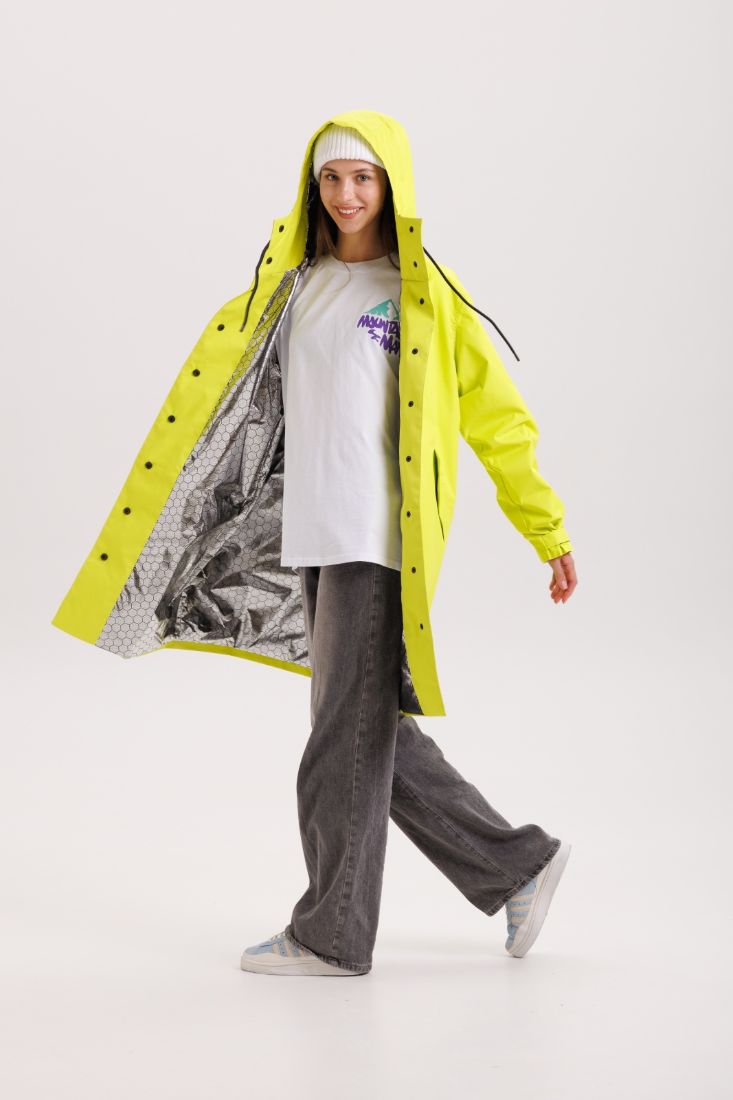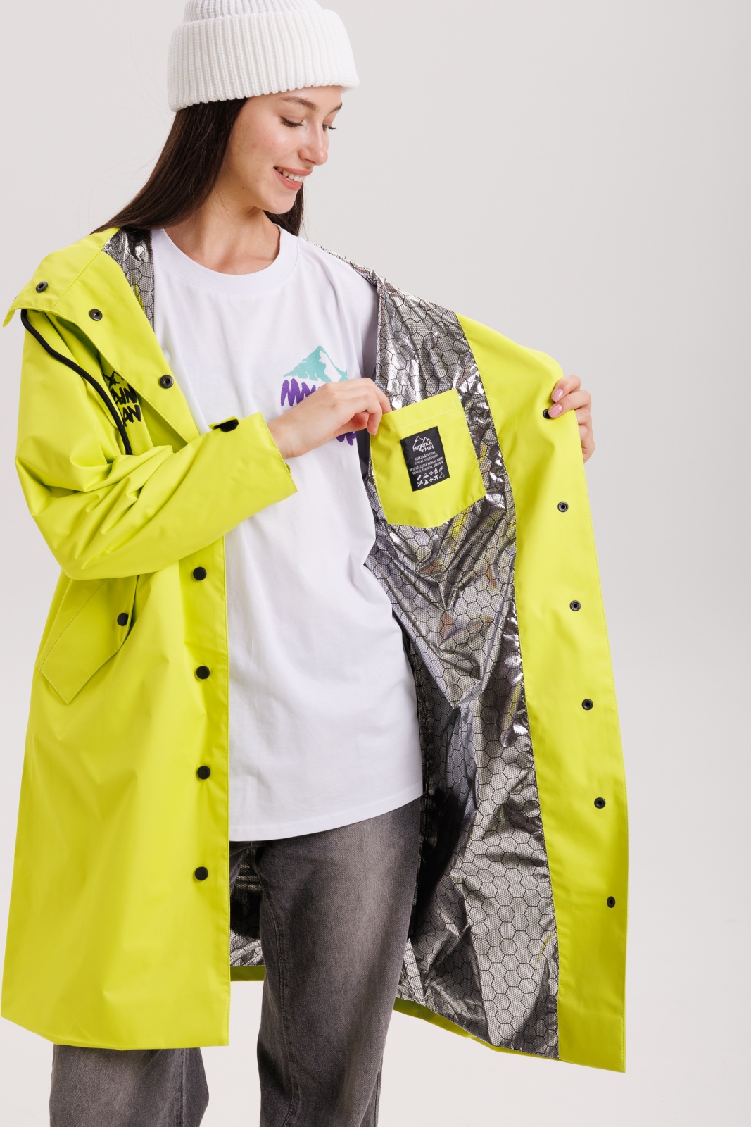 • Фольгированная подкладка: Эффективно сохраняет тепло, отражая его внутрь, что особенно важно в прохладную и сырую погоду.