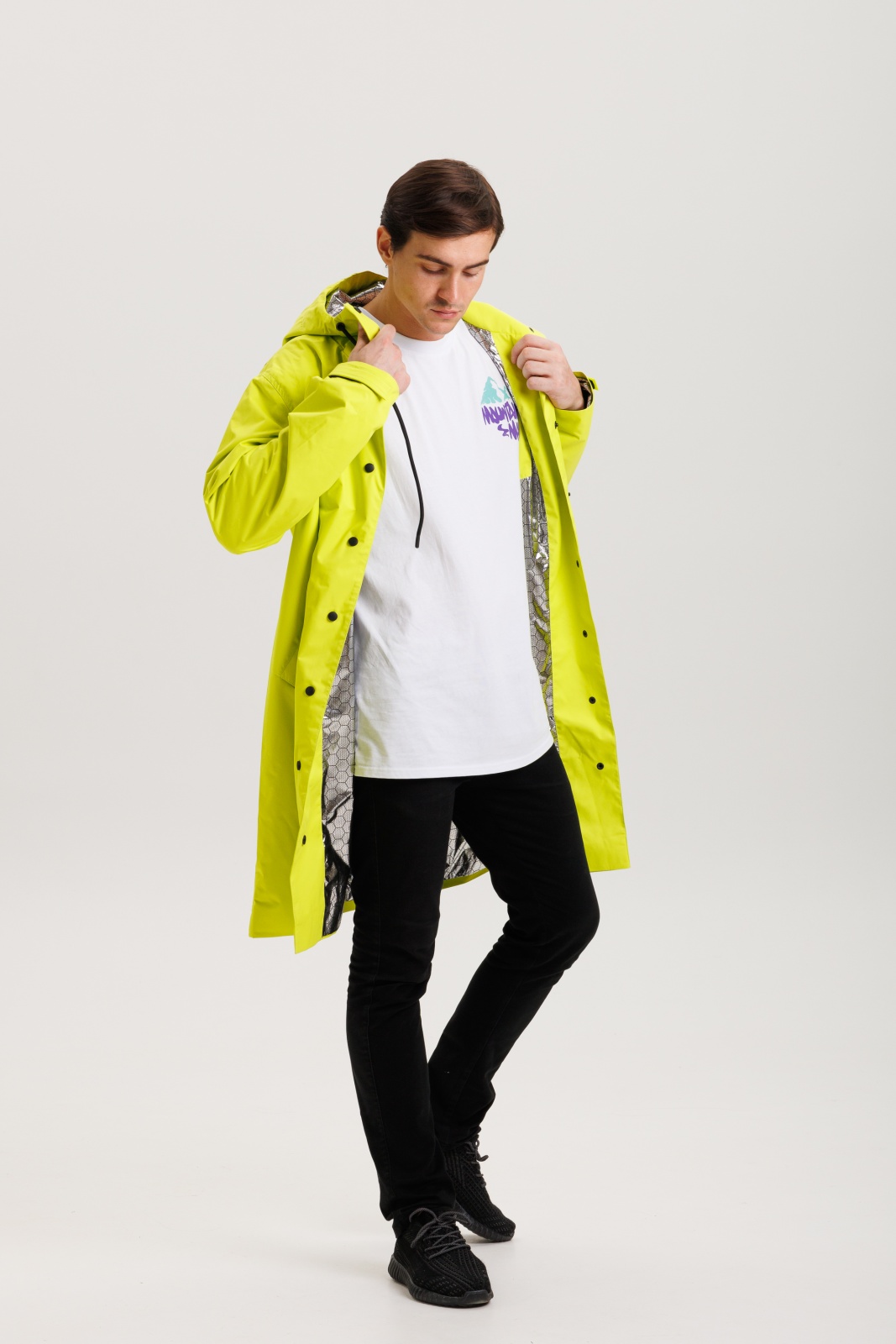 • Комфортный крой: Свободный силуэт с регулируемыми манжетами и капюшоном адаптируется под любые условия и движения.