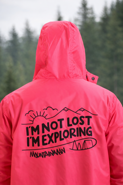 Плащ-дождевик  "Я не потерялся. Я исследую" (розовый) купить в Челябинске – Mountain Man